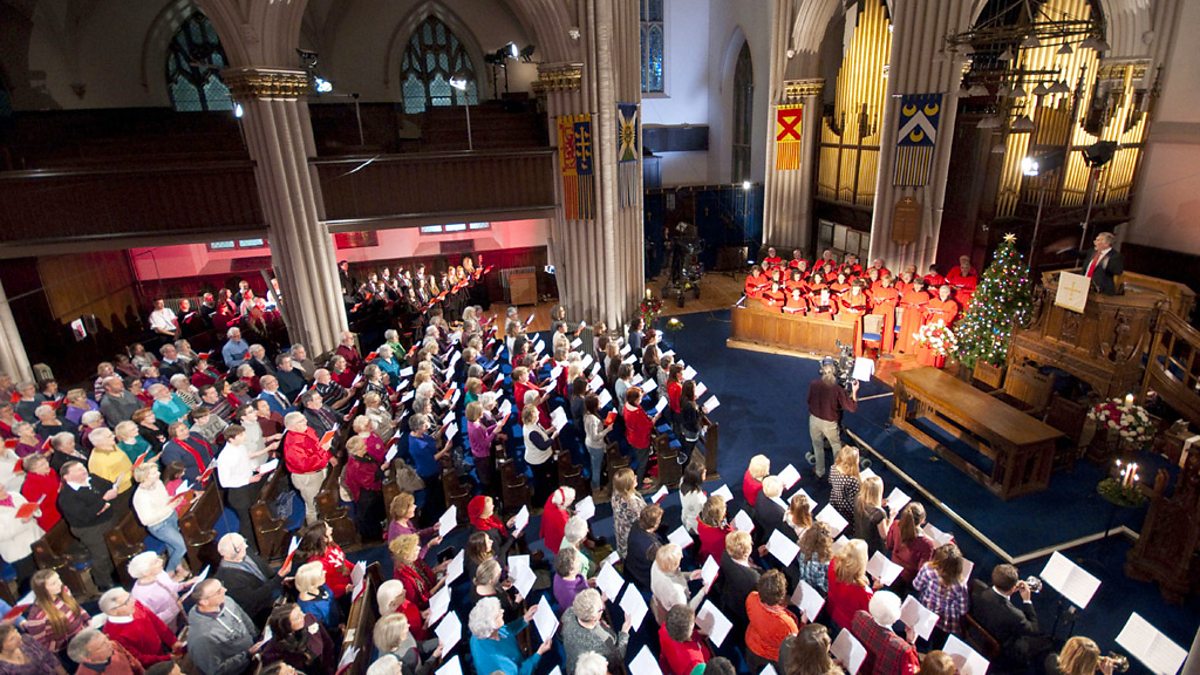 Sally Magnusson introduces A Christmas Celebration from Dunfermline Abbey Church, with favourite carols including O Come All Ye Faithful and Once In Royal David's City.