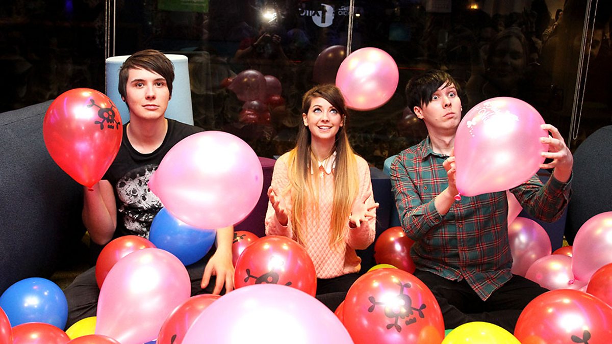 Dan and Phil kick the year off with a very literal BANG as Zoella joins them for an oven glove balloon pop-off!