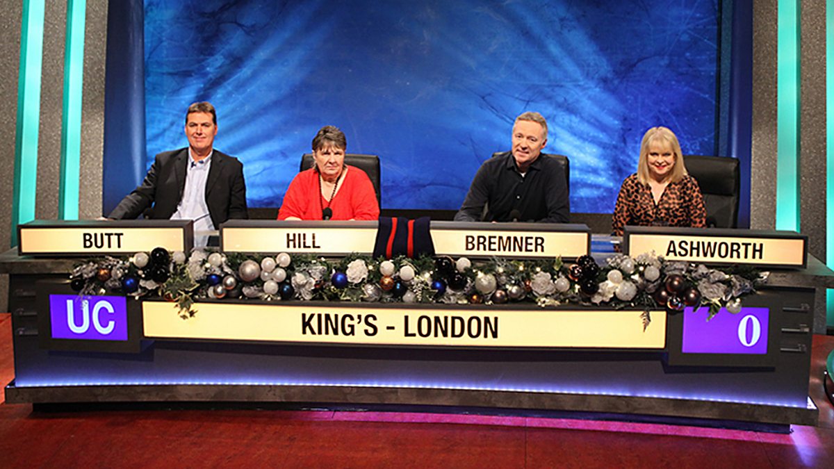 In the last of the first round matches, guests include comedian and writer Rory Bremner and novelist Susan Hill from King's College, London. They play the University of Southampton team, which features Jason Cowley, editor of the New Statesman, and horticulturalist Stefan Buczacki.