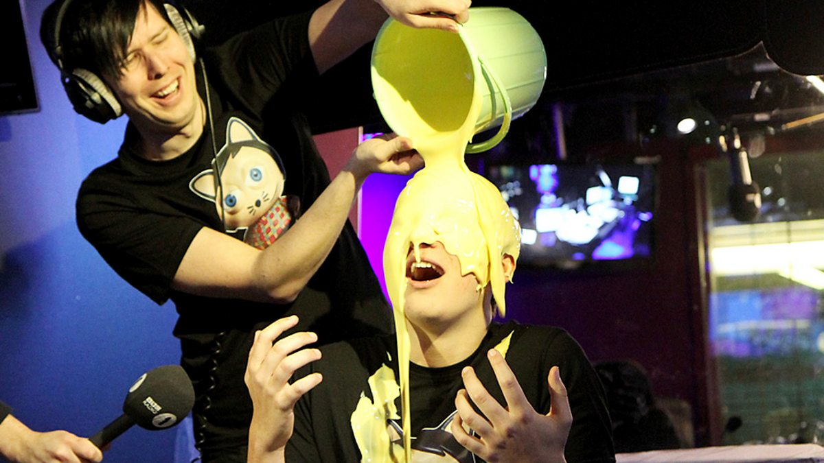 Dan gets a custard facial from Phil as punishment for losing 2013's Dan vs. Phil.