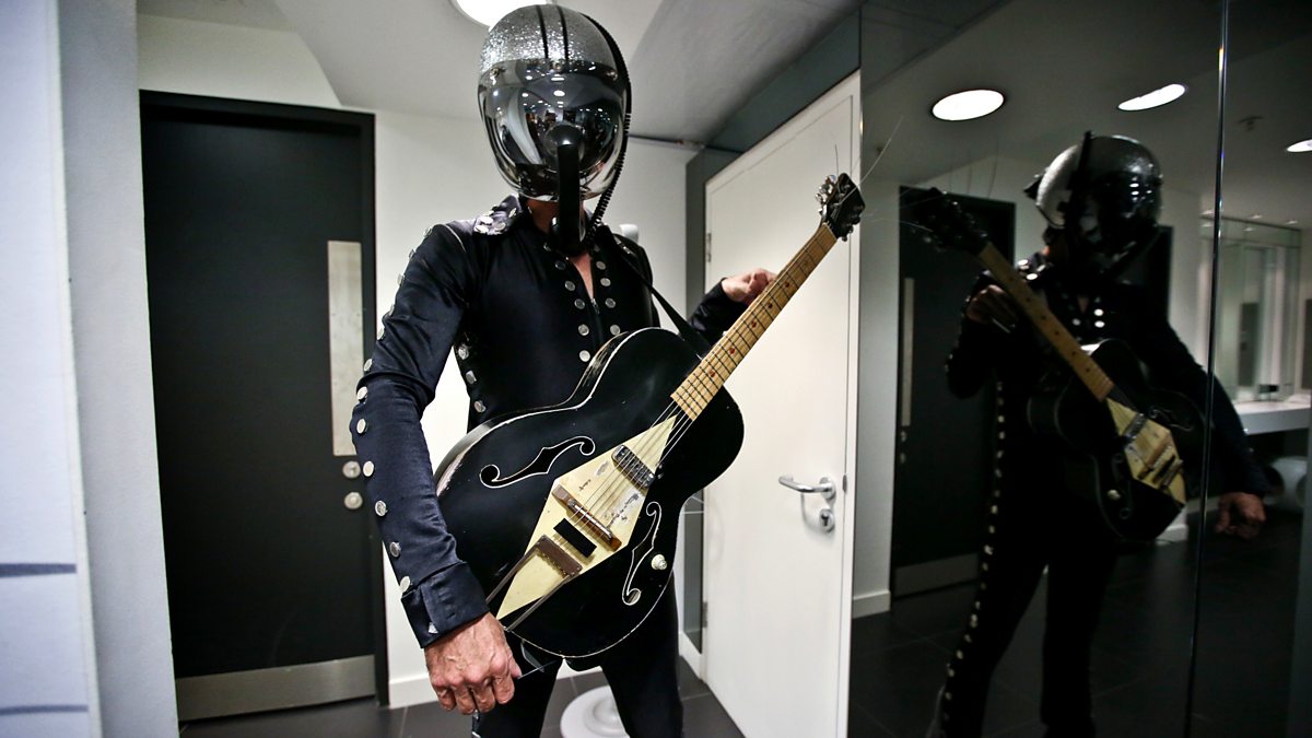 Music from North Malian 8 piece Tinariwen who perform 'Chaghaybou' from their album 'Emmaar'. More music comes from helmet-clad one-man-band Bob Log III performing 'The Rattler' from his album 'Log Bomb'.