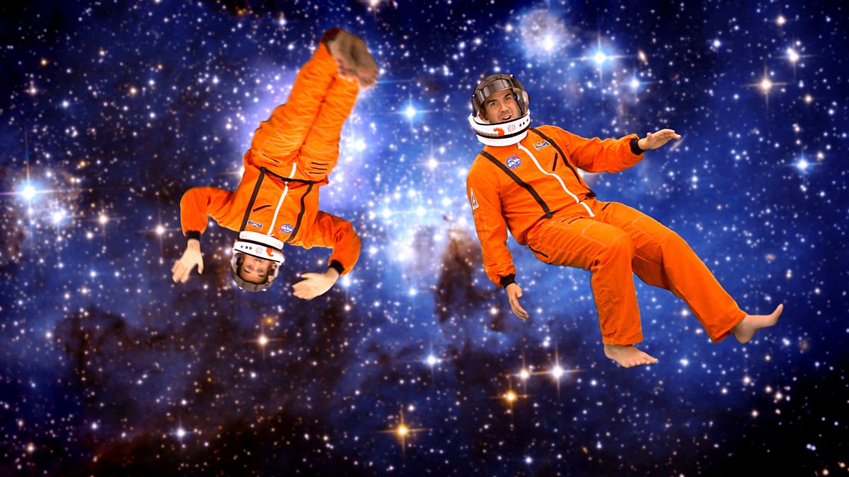 Dr Chris and Dr Xand learn about space. Dr Maggie demonstrates how something as big as a satellite can stay in orbit around the Earth.
