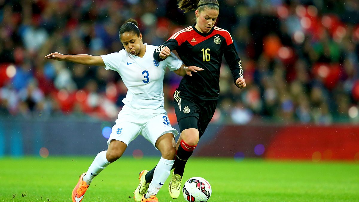 Jacqui Oatley presents from Wembley as England take on Germany in a women's international. The England team have been on a fantastic run under Mark Sampson, qualifying for 2015's World Cup in Canada with a 100 per cent record from their group. They will face the sternest of tests against Germany, who have lifted the European Championship crown on six successive occasions, but will have a record crowd for an England women's match to cheer them on.