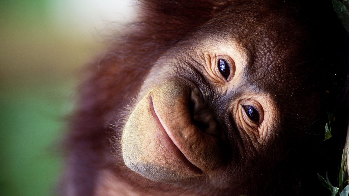 Orang-utans live on Borneo and Sumatra in South-east Asia and are the only great apes found outside Africa. The name orang-utan means man of the forest. They spend most of their time in the treetops of the rainforests, passing from tree-to-tree by climbing or swinging. Their strong arms stretch out longer than their bodies and allow them to move about in the rainforest canopy with ease, or to hang from branches eating fruit and leaves.