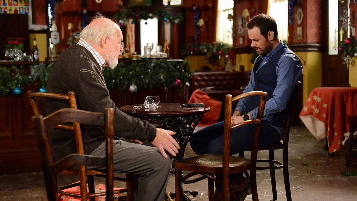 Shirley desperately asks Mick to hear her out, but Mick ignores her. A fragile Linda arrives back with Elaine. When Linda enters the Vic and sees the damage Mick has done, it’s too much for her and she swiftly leaves again. Linda turns up at Sharon’s – much to Phil’s annoyance. Elaine heads over to Sharon’s with Mick. Mick attempts to explain to Linda why he smashed up the pub – he was so angry he couldn’t see straight. Linda accepts Mick’s apology and admits the one thing she wants more than anything is for what’s happened not to change things between them. Shirley arrives back at Patrick’s, fuming that people have believed Linda. Dean suggests leaving again– just him and her; he sees no other way. Elaine and Sharon come back into the living room to see a reconciled Mick and Linda.