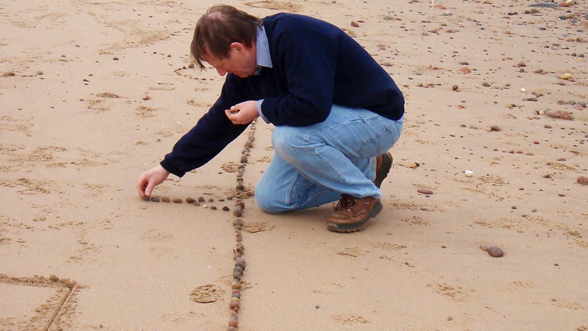 (Photo: Lines of pebbles on the beach with Timothy Ingold)