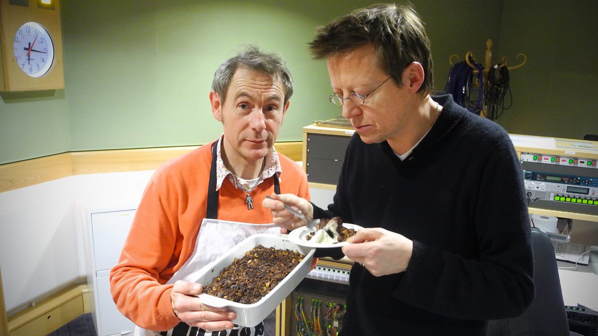 Nigel cooks up a storm for Drivetime... this week: Chocolate, pear and ginger crumble.