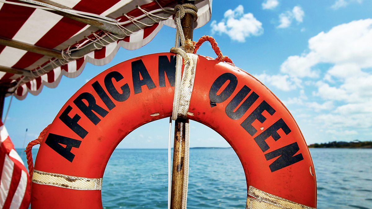 Patriotically, but naively, Rose conceives of blowing up a German warship to help the war effort. Cowardly Cockney Charlie Allnut reluctantly agrees to use his rickety steam-powered boat, The African Queen for her cause.