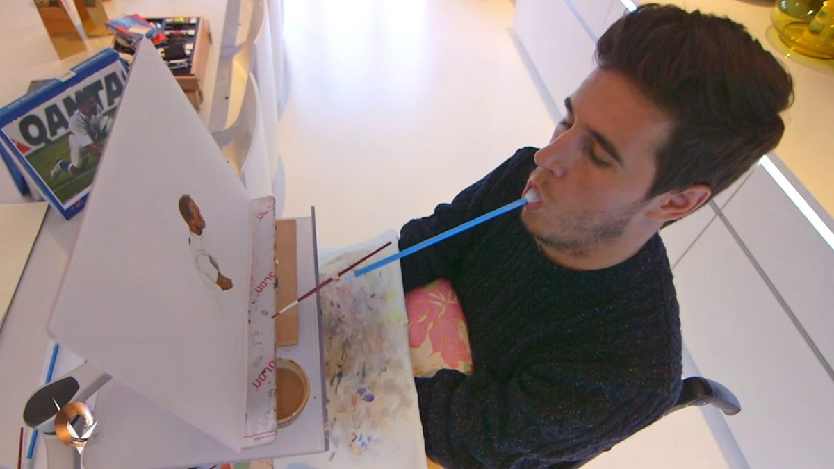 A man left paralysed from the shoulders down following an accident in 2009 is to have his painting of England rugby union captain Chris Robshaw printed on the front of a national newspaper.