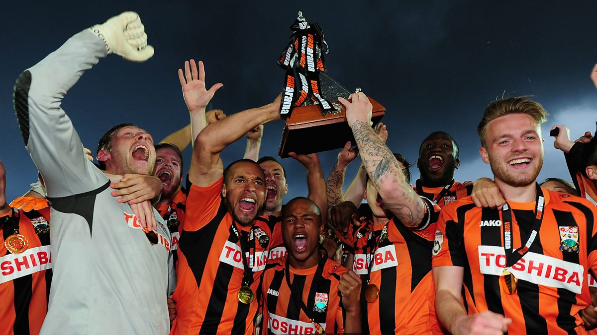 Photo: The Barnet Team celebrate with the trophy after clinching promotion at The Hive. Credit: by Dan Mullan/Getty Images