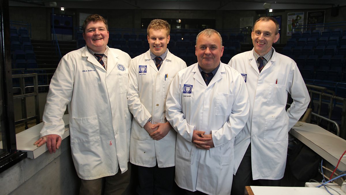 Sheep auctioneer, Colin Slessor gives thirteen year old farmer Joe McKenzie some last minute advice
