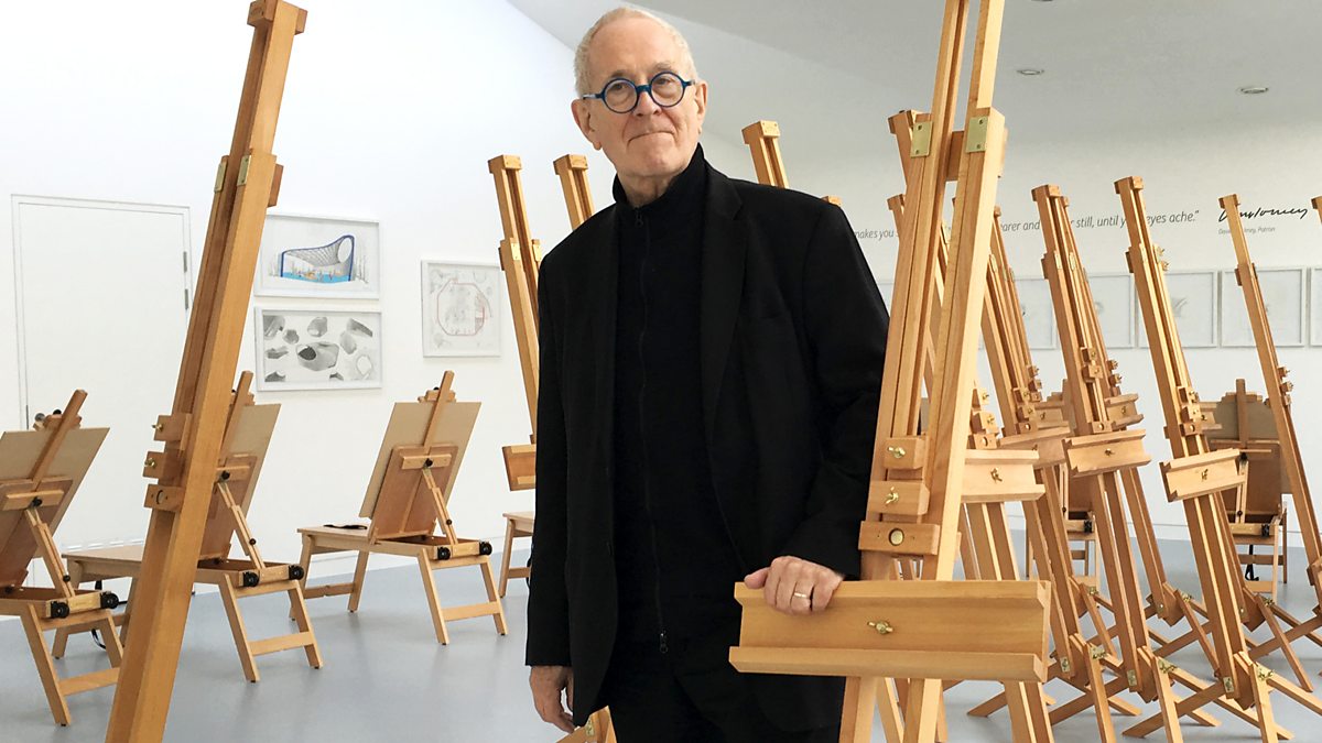 Professor Sir Peter Cook received a knighthood for services to architecture and was awarded the Royal Gold Medal from the Royal Institute of British Architecture, yet he has never designed a building in Britain - until now. He shows us around the drawing studio he's created for the Arts University Bournemouth.