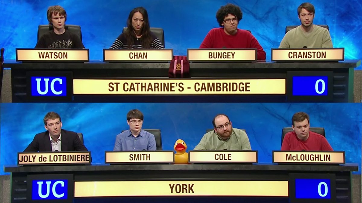 In another quarter-final match, two teams of students aim to reach the next stage of the quiz. Jeremy Paxman asks the questions.