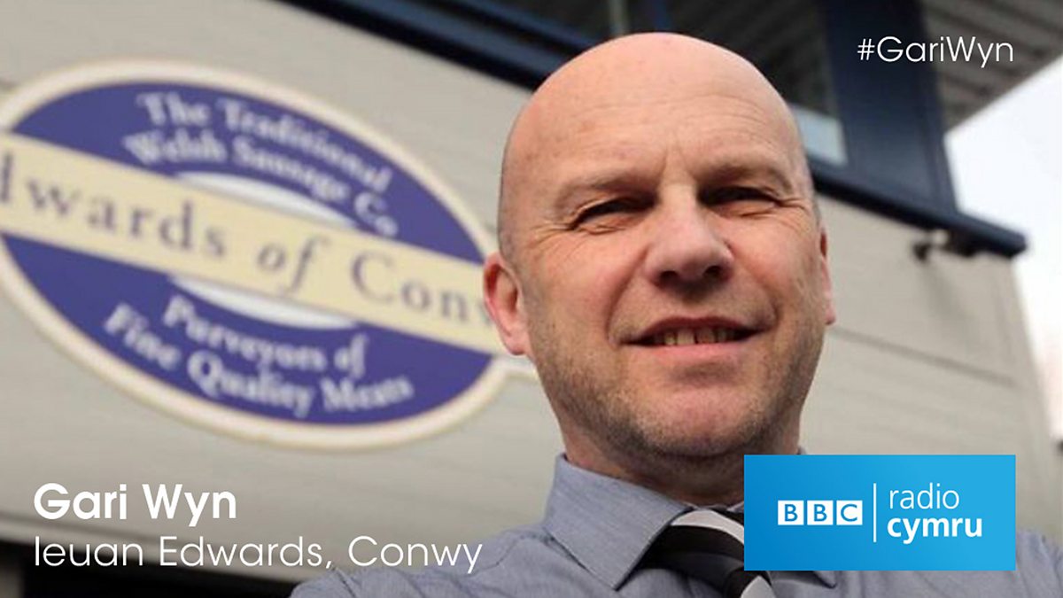 Gari Wyn sy'n clywed hanes busnes cig Edwards o Gonwy.