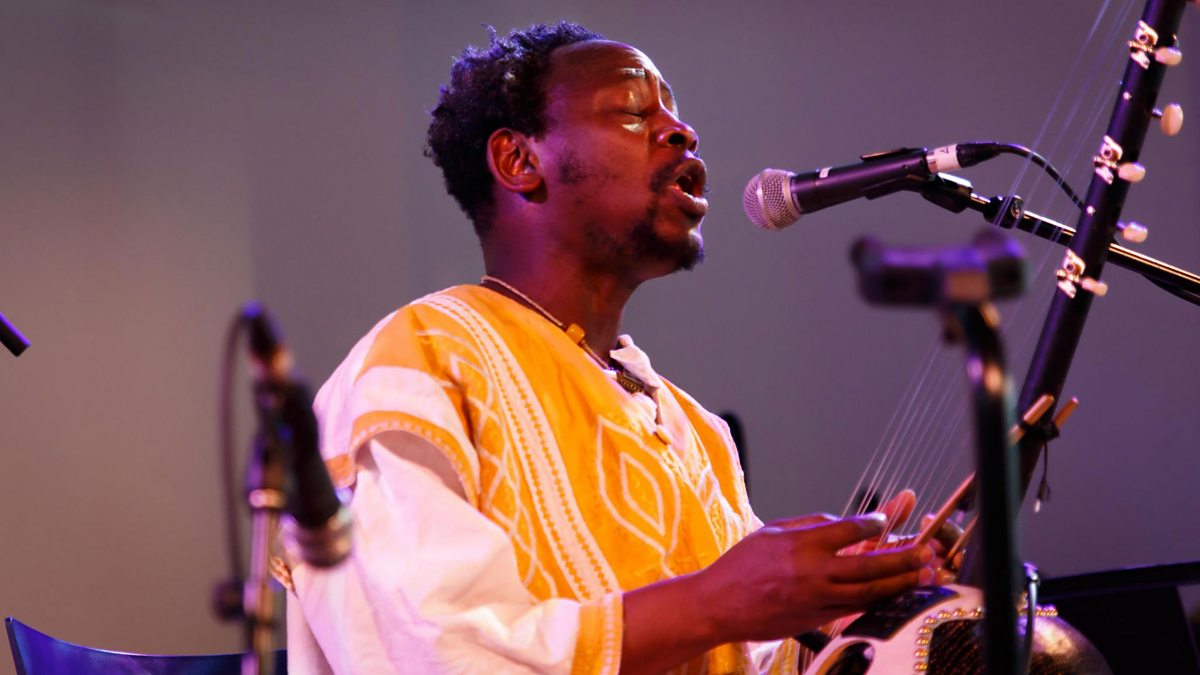 Kathryn Tickell with Mosi Conde, one of the finest UK-based kora players - a griot from Guinea-Conakry, in session.