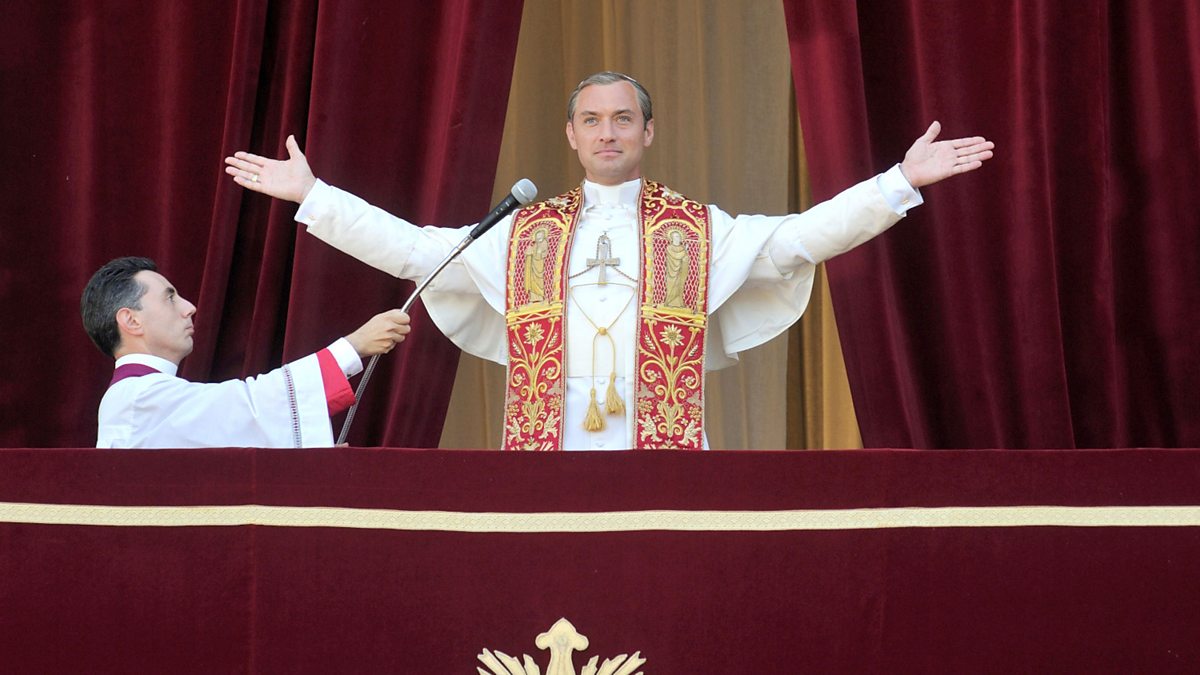 Images - Main image above and image to the left: Jude Law as Pope Pius XIII in the Young Pope.