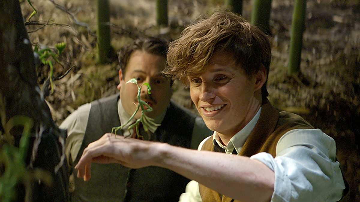 Main image above: Dan Fogler as Jacob (Left) and Eddie Redmayne as Newt with a beast called a Bowtruckle.