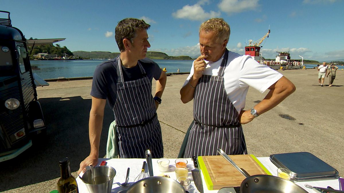 Nick and Dougie are in Oban to create a sauce from Sea Buckthorn juice to accompany a scallop and bacon dish.