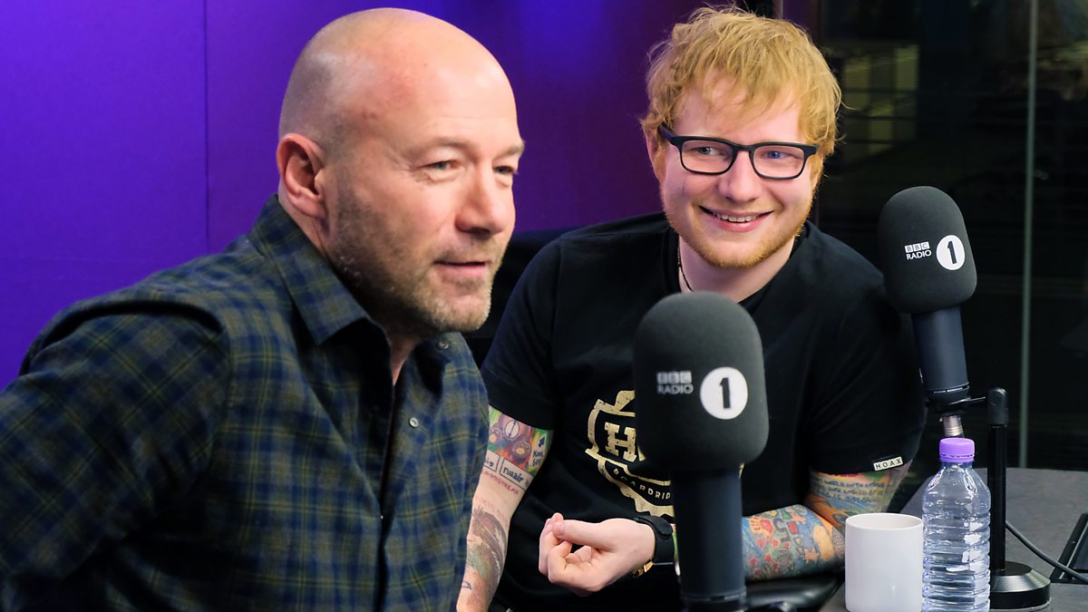 Ed Sheeran joins Scott Mills and Chris Stark to co-host the Radio 1 Breakfast Show and play new songs....AND Alan Shearer pops in. Standard.