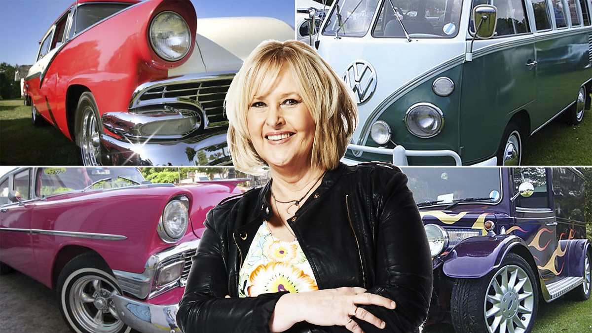 Caryl a'i gwesteion yn trafod perthynas pobl â cheir. Caryl and guests discuss the relationship between people and cars.