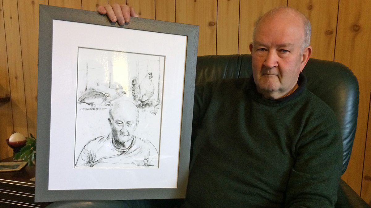 Nì Fraoch Nic an Deòir dealbh dhen Sgitheanach, Dòmhnall 'An Eireag" Dòmhnallach. Heather Dewar draws a charcoal portrait of Donald 'The Hen' MacDonald.