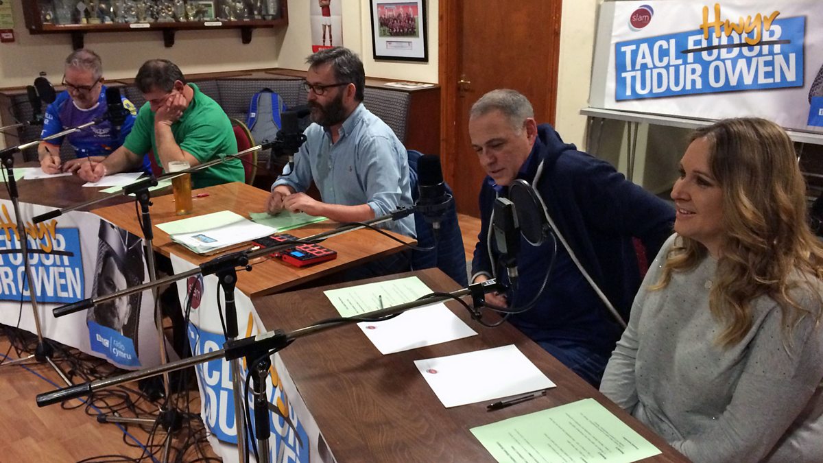 Y panelwyr yng Nghlwb Rygbi Crymych ydi Tommo, John Davies, Gareth Roberts a Catrin Heledd.