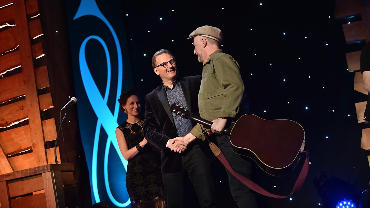 Billy Bragg performs a special tribute to influential US folk icon Woody Guthrie, who died, tragically young, 50 years ago. Activist and songwriter Guthrie, who sang with Pete Seeger and mentored Bob Dylan, is inducted into the Folk Awards Hall of Fame. Previous inductees include Sandy Denny, Cecil Sharp and Ewan MacColl.