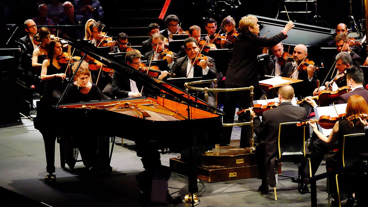 Katie Derham introduces a mix of European and Latin American repertoire, performed by the Sao Paulo Symphony Orchestra (Osesp). First, opening the afternoon, Milhaud's La création du monde, followed by two pieces by Poulenc, his Concerto for 2 Pianos with soloists Eric Le Sage and Frank Braley, and his suite from Les Biches. Then comes Gershwin's An American in Paris, closing this concert conducted by Stephane Deneve. It's followed by the premiere of a piece by the contemporary Brazilian composer Aylton Escobar called A Rua dos Douradores (Litany of Hopelessness), commissioned by the Osesp, and then Sibelius's Symphony No. 6, this time with Osmo Vanska at the helm, conducting the Sao Paulo Symphony Orchestra.