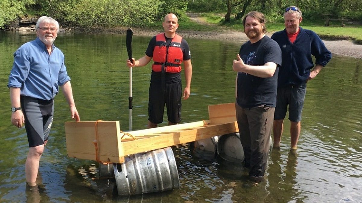 Pa siâp sydd ar rafft Aled a'r criw, tybed, cyn iddyn nhw fentro i'r Fenai ym mis Mehefin?