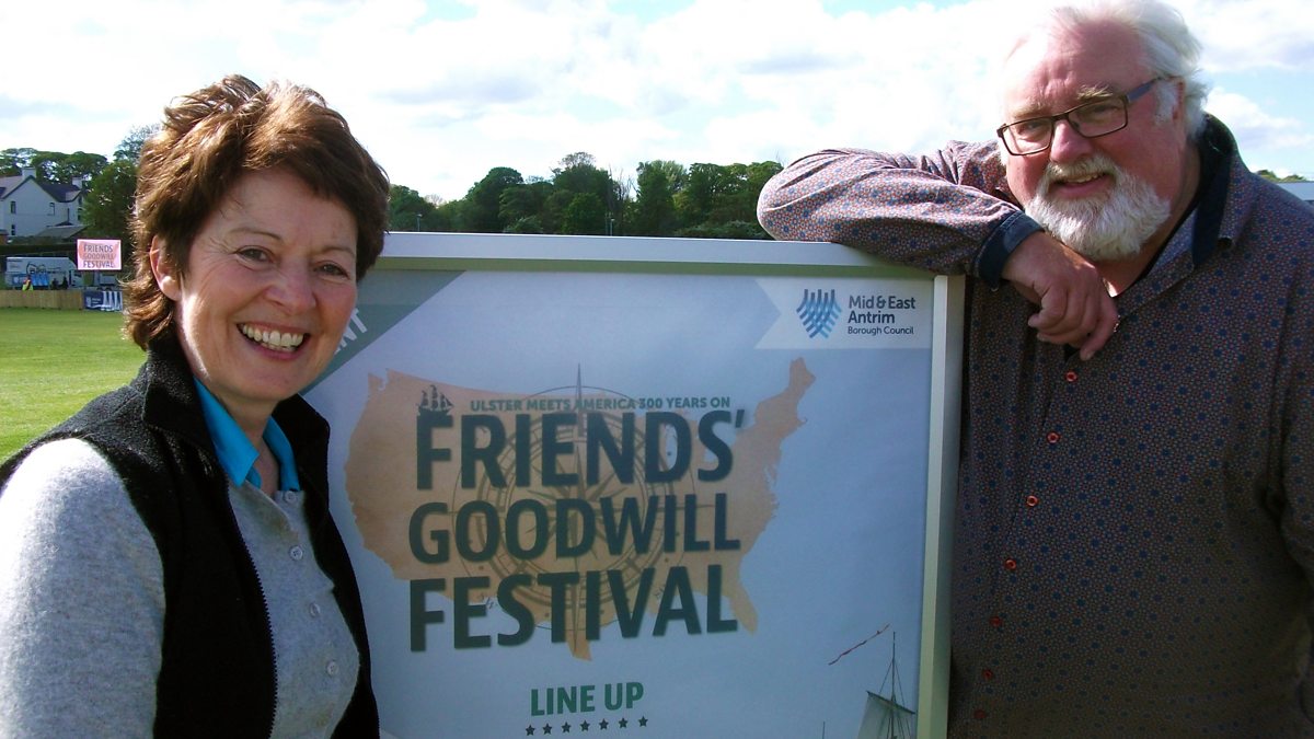 Helen Mark is in east Antrim at the Friends' Goodwill Festival in Larne, named for the emigrant ship that sailed west from there exactly 300 years ago, in May 1717. With history, music, and a taste of drama, the festival celebrates the many thousands of emigrants from Northern Ireland who crossed the Atlantic to find a new home in America. And in north Antrim, Charlie Gillen has news of an upcoming commemoration of a local hero from World War I.