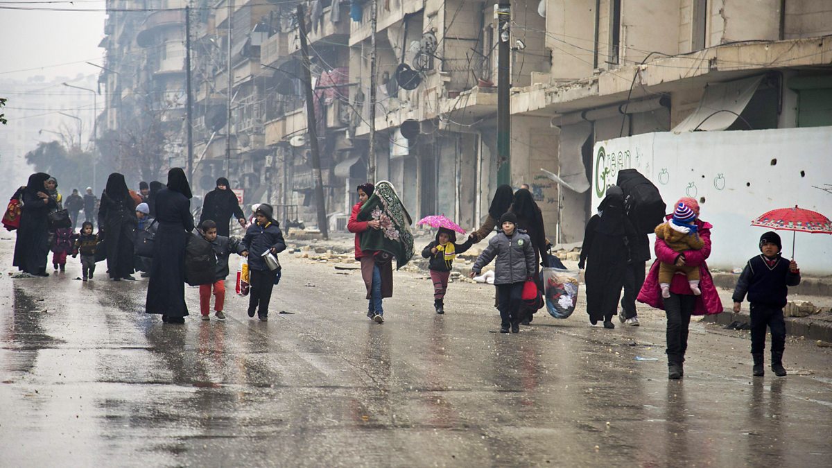 On December the 14th last year the BBC's Mike Thomson awoke to a desperate voicemail message. It came from a frightened mother of three in besieged East Aleppo. Head teacher, Om Modar, who had been in regular contact with Mike, was pleading for help. Syrian government forces were closing in on the rebel-held area and bombs were falling around the shelter she shared with dozens of petrified children. Her voice, crackling with fear, said: "Please, please help us get out of Aleppo by safe corridor.....we are terrified.....please help us." That was the last Mike heard from Om. Months of silence followed. Finally, he became convinced she was dead. Then out of the blue came a two-line text. It revealed the fate of Om Modar and led Mike to near the Syrian border.