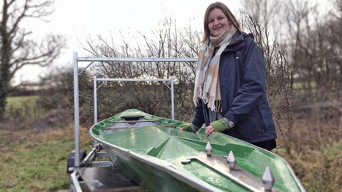 Angela Evans sy'n sôn am y cwch arbennig mae wedi ei fewnforio'r holl ffordd o Fenis. Cwch i'w rhwyfo wrth sefyll ydi hi, ac yn ôl Angela, dyma'r gyntaf o'i math i gyrraedd Cymru.