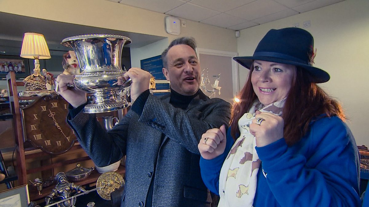 Charlie Ross is in charge of today's two teams of bargain bunters at Nottingham Racecourse. Expert advice comes from Thomas Plant and Nick Hall. Meanwhile, Charlie test the fair goers' knowledge of hallmarks.