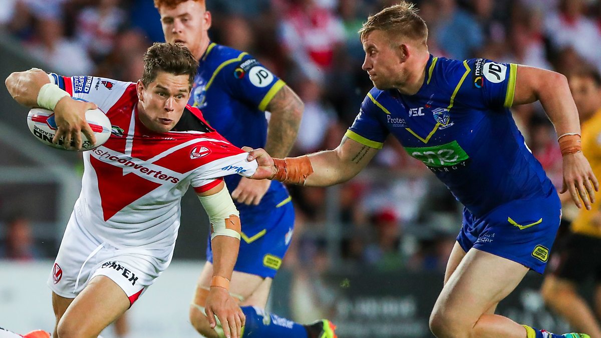 Highlights from the Super League. St Helens v Warrington, Hull FC v Hull KR, Wigan v Catalans Dragons, Huddersfield v Wakefield, Salford v Leeds and Widnes v Castleford.