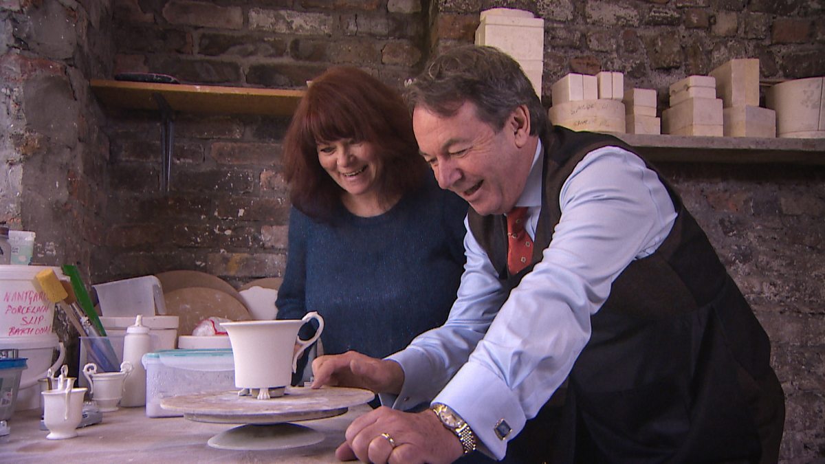 Eric Knowles oversees today’s Bargain Hunt which comes from the National Botanic Garden of Wales in Carmarthen. Kate Bliss and Ben Cooper are guiding the reds and blues, who have three hundred pounds to spend on three items that will hopefully make them a profit at the auction in Cardiff. Eric also visits Nantgarw China Works in South Wales, which produced one of the most beautiful porcelains in the world.