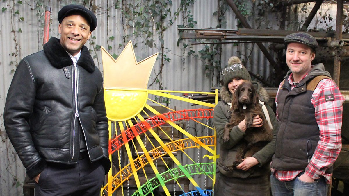Junk makeover show. At Altrincham Recycling Centre, Jay Blades rescues some mattress springs, an old writing bureau and a broken granite worktop,.
