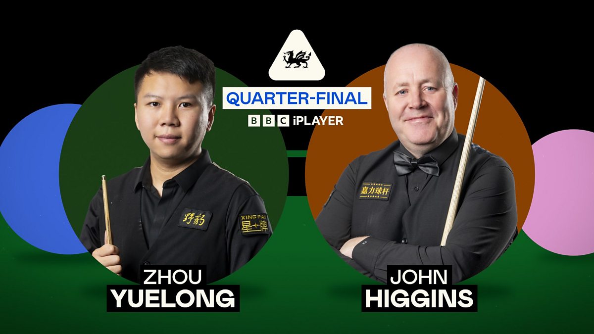 Evening session action of table 1 featuring John Higgins v Zhou Yuelong in the quarter-finals.