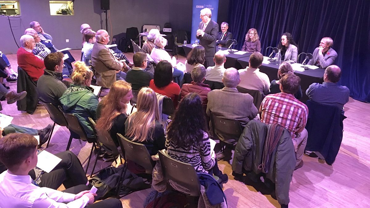 Trafodaeth ar amrywiol bynciau yn Nhrearddur, Ynys Môn, gyda Dewi Llwyd yn cadeirio.