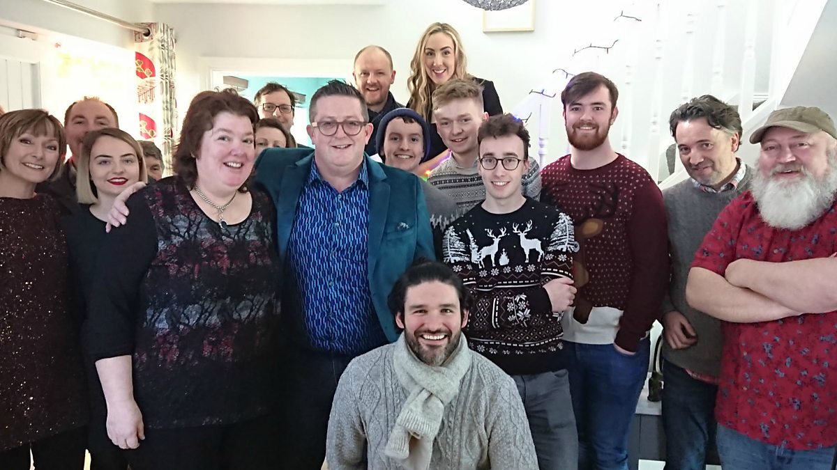 John has opened his doors for the annual Christmas party from his home in Saintfield. Live music is from Derry's Paul Casey and George Hutton, Newry's Barbershop Quartet - Three and a Half Men and Rose McCullagh from Lisburn who is performing the Wexford Carol. Aileen McVeigh and Pauline McNulty from the Newcastle Harbour Swimmers will convince John of the benefits of taking the plunge over Christmas, Michael and Laura Briggs share their passion for board games and Paula McIntyre's cooking spiced pineapple and rum-glazed ham, and sausage and cornbread stuffing.