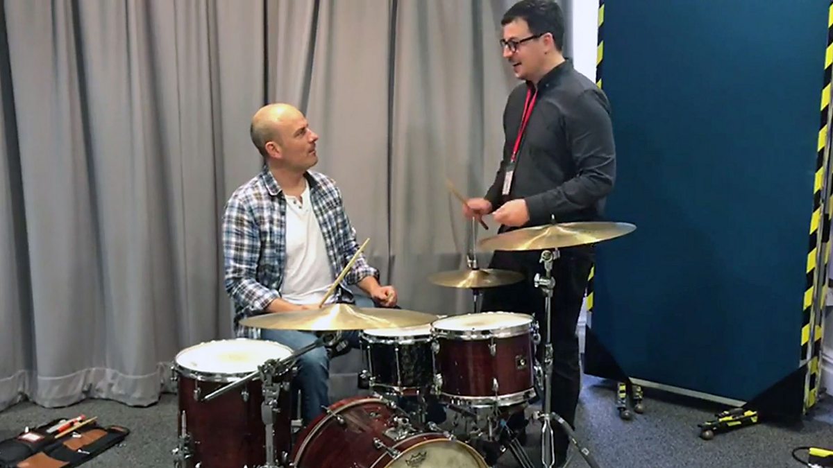 Wrth i'r ymgyrch band sosban barhau, mae Aled yn cael gwers ddrymio gan Dafydd Cowbois. Dafydd from Cowbois Rhos Botwnnog gives Aled a drumming lesson.