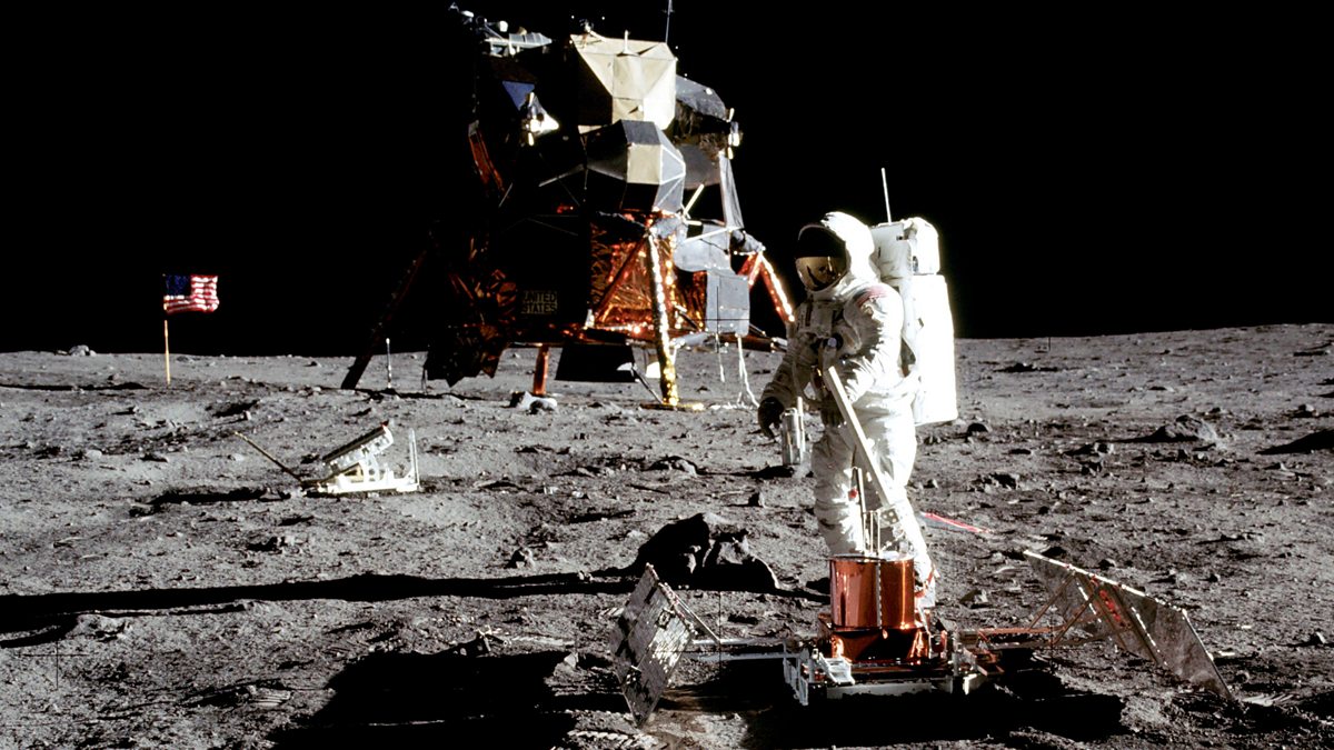 Ai twyll oedd dyn yn troedio'r lleuad? Geraint Iwan sy'n trafod fel y mae rhai yn credu hynny. Geraint Iwan discusses the conspiracy theory that man did not set foot on the moon.