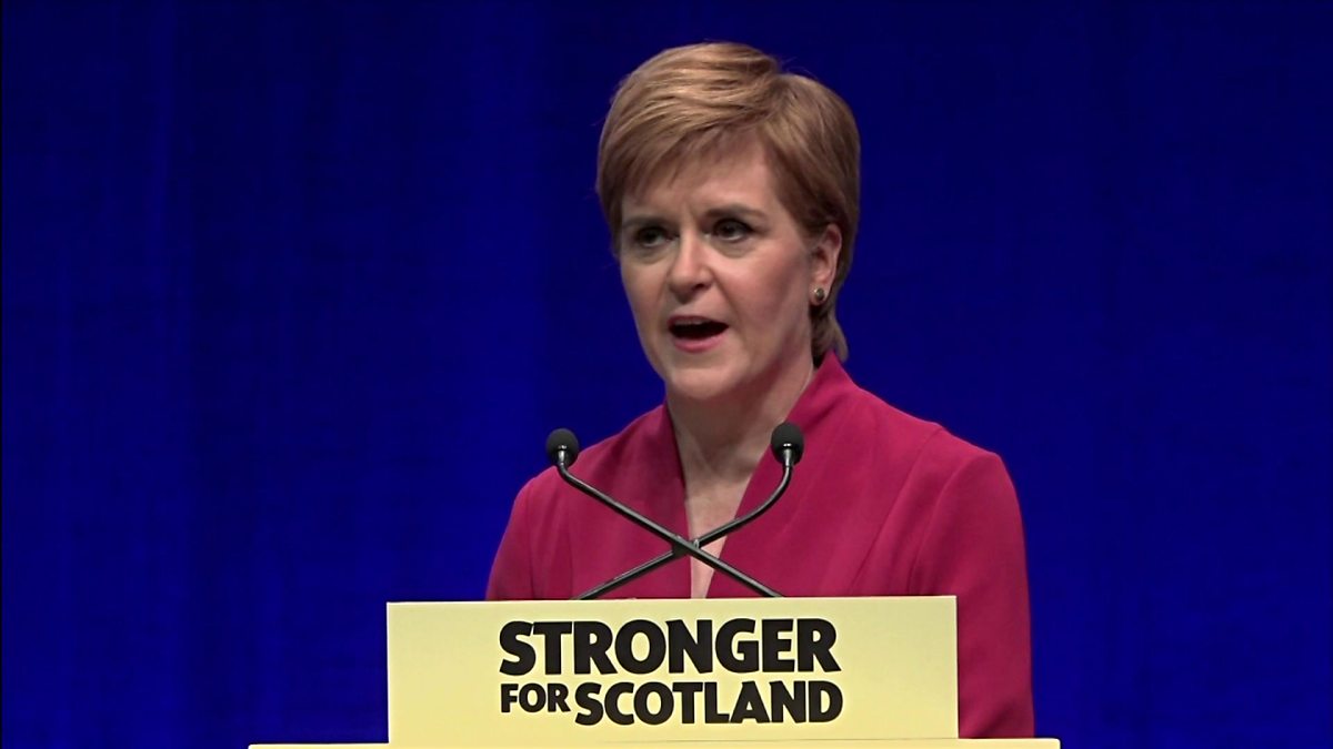 Recorded coverage of the speech by SNP leader Nicola Sturgeon on Tuesday 15 October to her party's conference in Aberdeen.
