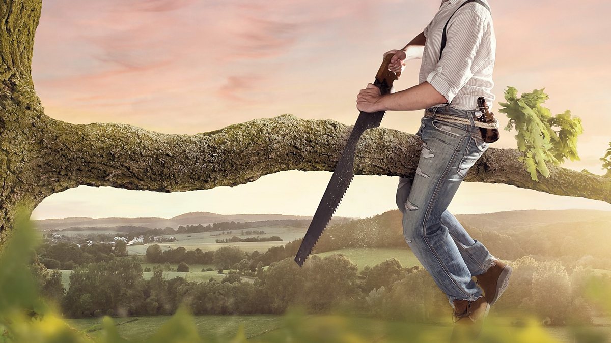 Johnny The Elvis Fan bought a new saw to cut a branch of a tree and he is very happy with it.