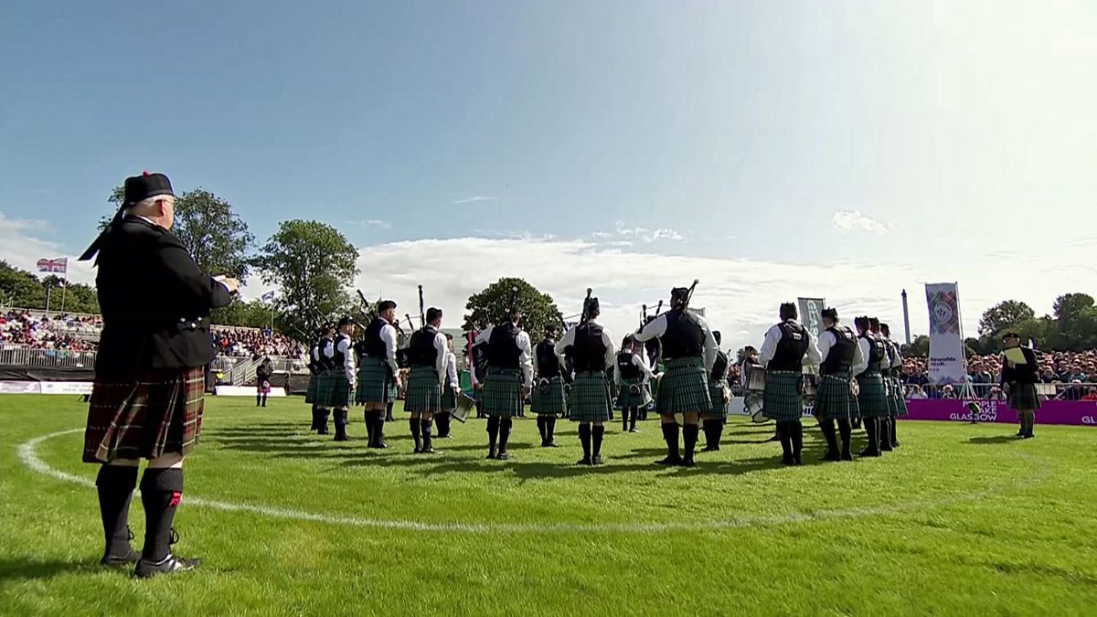 Catrìona NicNèill aig Farpaisean Chòmhlan Pìoba na Cruinne le còmhlain aig ìre a h-aon. Carrie MacNeil presents Grade 1 performances from the World Pipe Band Championships.