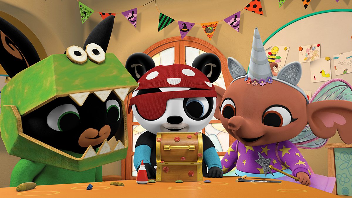 At Halloween, Charlie isn’t happy when he sees Bing dressed as Bitey-saurus but he soon recovers when he realises it is just a bit of fun.