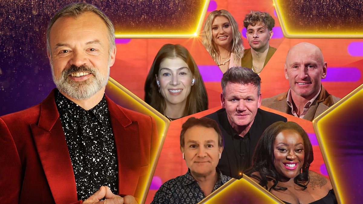 Graham is joined by actress Rosamund Pike, chef Gordon Ramsay, presenter Judi Love, Downton Abbey star Hugh Bonneville and Welsh rugby great Gareth Thomas.