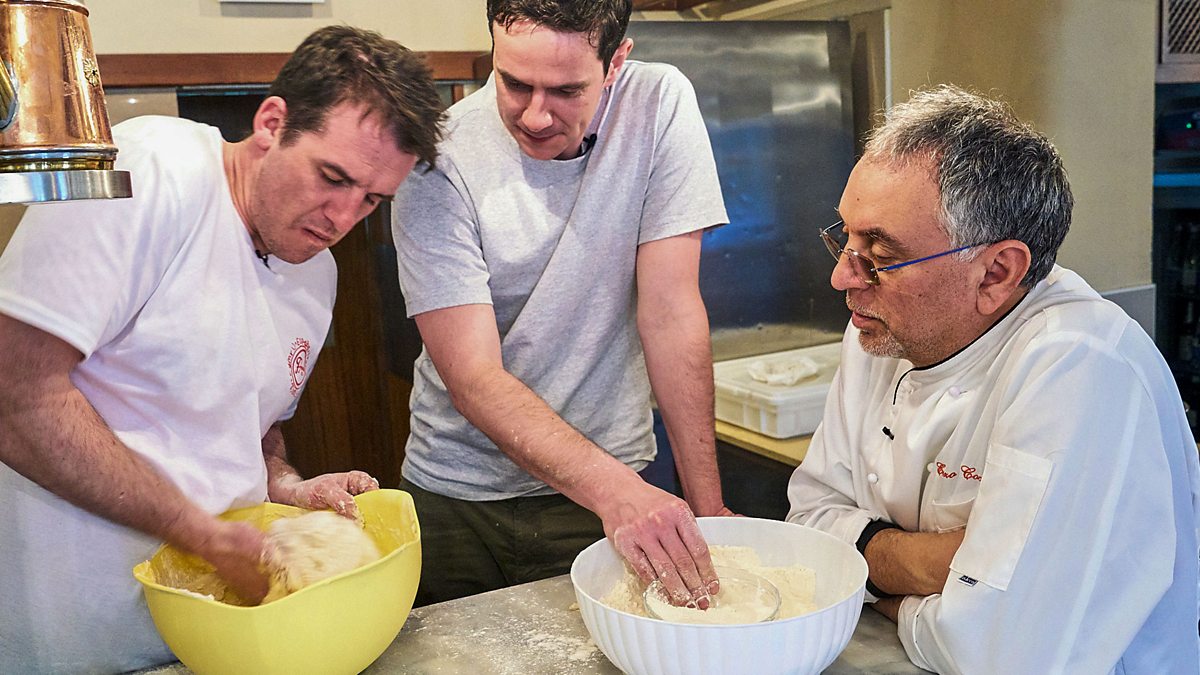 Two days before the championships, and the nerves are really starting to kick in. Before they leave Napoli, there’s time for one more masterclass with the man who wrote the rules on Neapolitan pizza, and it’s not for the faint-hearted. Then, at last, the Pizza Boys reach Parma, where they pick up a final sprinkling of parmesan, mix the most important batch of dough they’ll ever make and try and get some sleep before the competition.