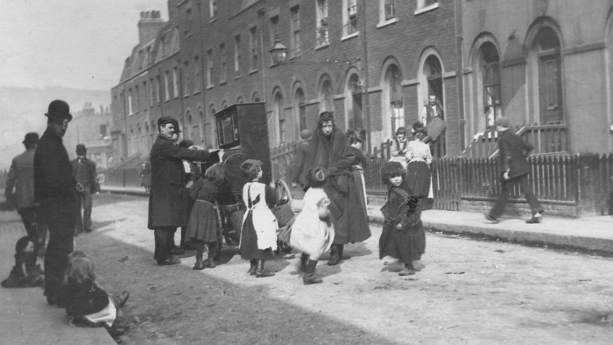 The image above is of an organ grinder on a London street, circa 1893, with children dancing to the Pas de Quatre