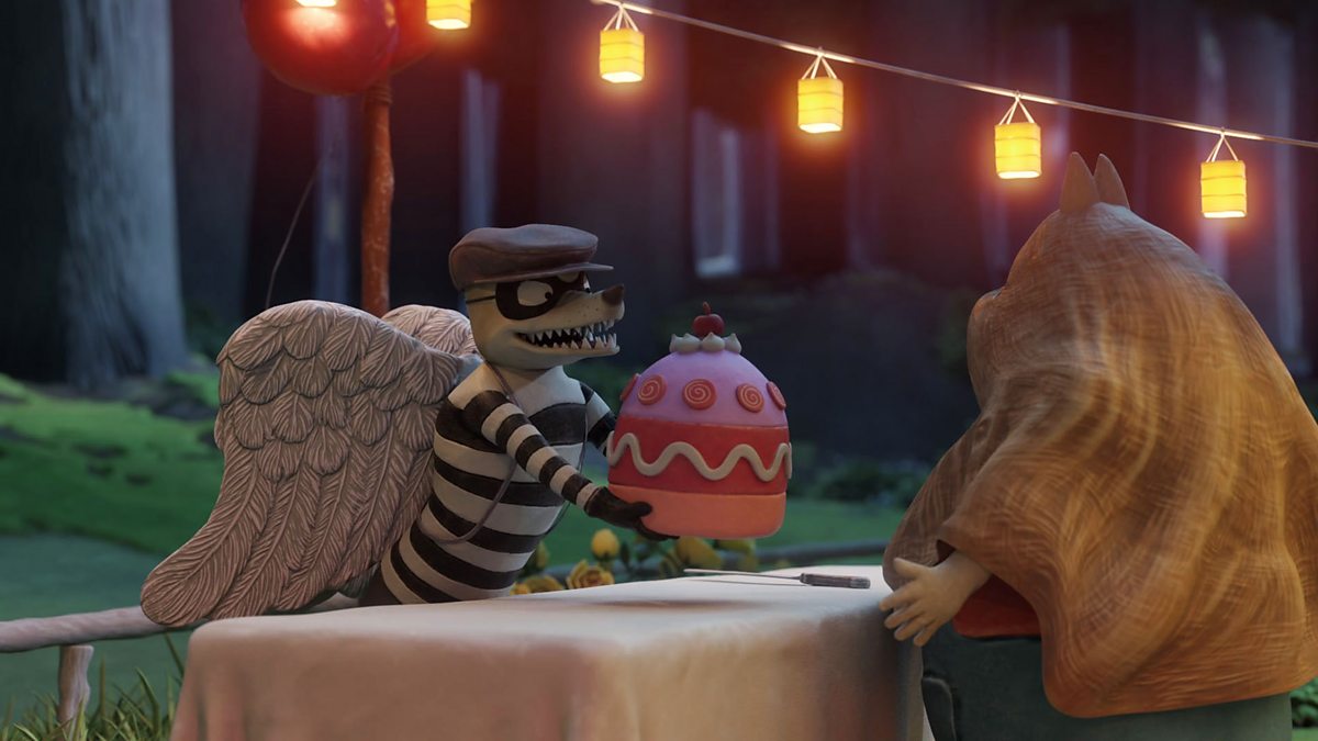 Fox and Hare are throwing a costume party. Everybody is having fun and the friends have done their very best to look as festive as possible. But who is the mysterious guest in ghost costume? And does he have something to do with the missing cake?