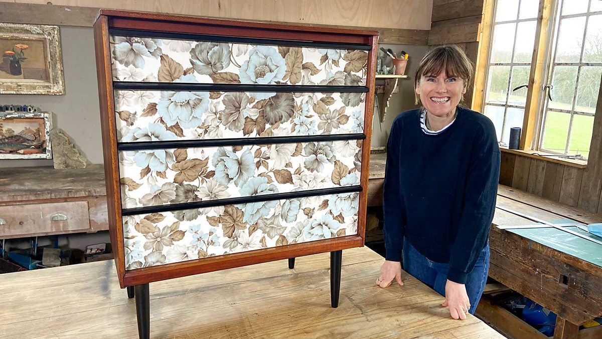 Sarah Moore is in Surrey on the lookout for quality discards at Witley Recycling Centre. She rescues a pair of vintage golf bags with clubs for bagmaker Neil Wragg to repurpose, a well-travelled naval trunk finds a safe haven with series newcomer Tibby Singh, and Sarah finds a way to save a retro chest of drawers.